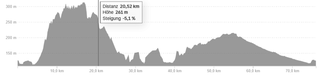 HM: ca. 600 I Streckenlänge: ca 77 km I Startzeit: 14:00 – 14:30 Uhr