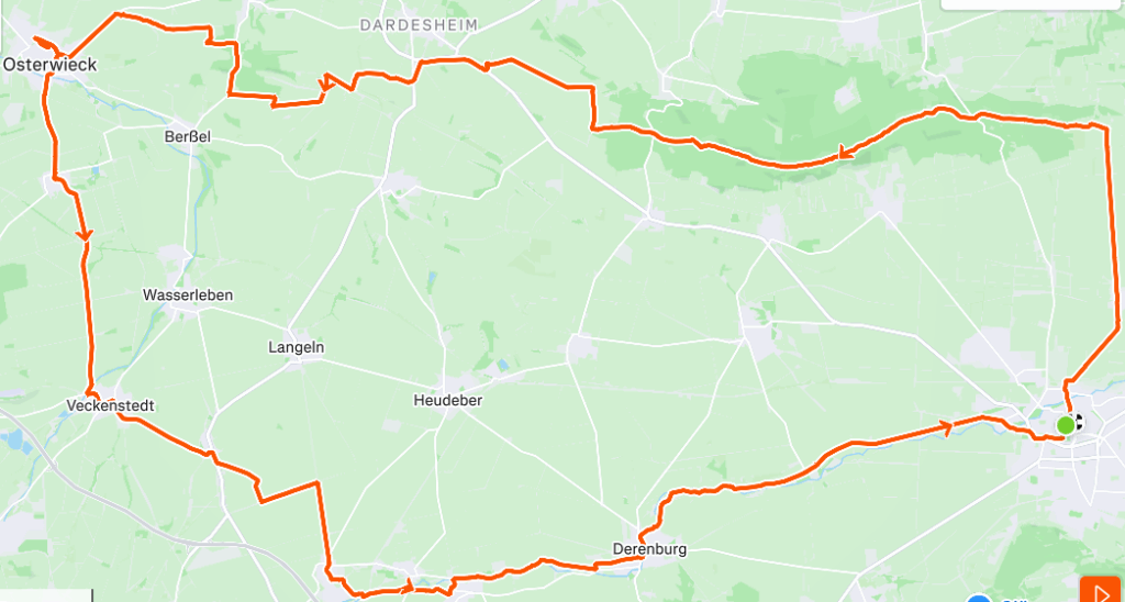 Strecke: Halberstadt – Neu Runstedt – Huykamm – Dardesheim – Deersheim – Osterwieck – Veckenstedt- Reddeber – Silstedt – Mahndorf – Halberstadt